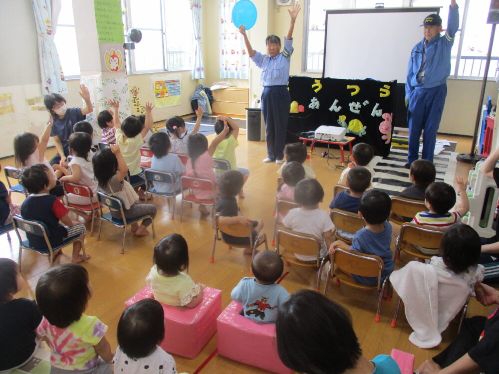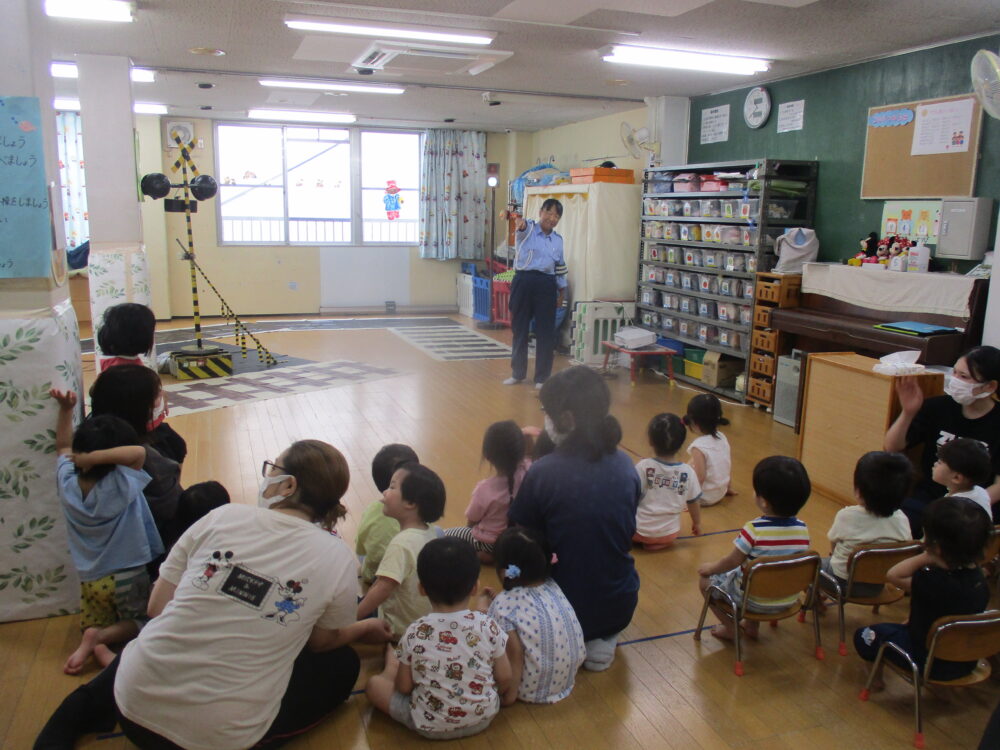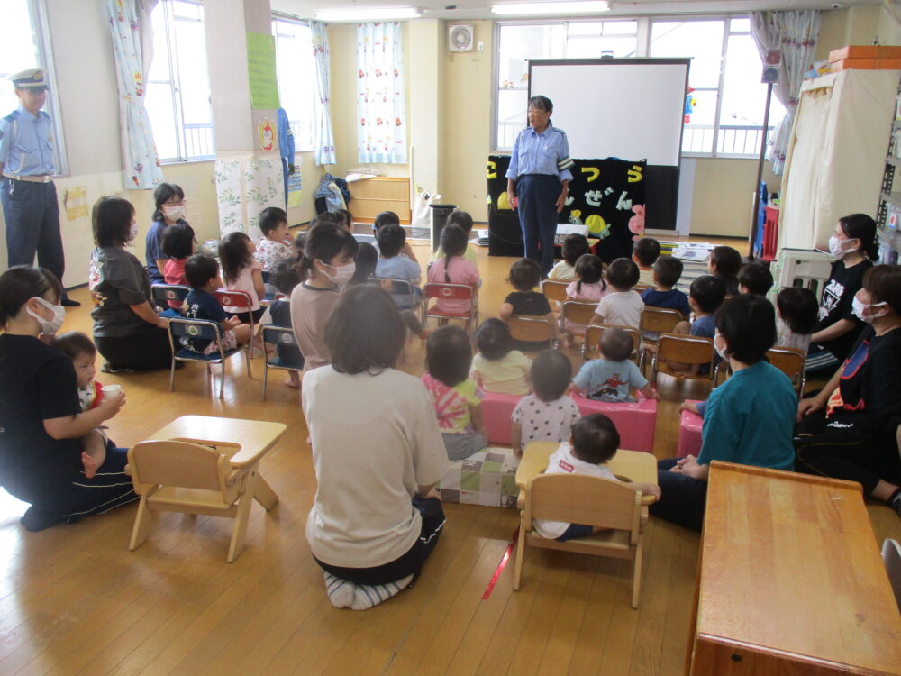 警察官や交通安全課の方々に来ていただき、交通安全に関するDVDを見たり、大切なお話を聞かせていただきました。