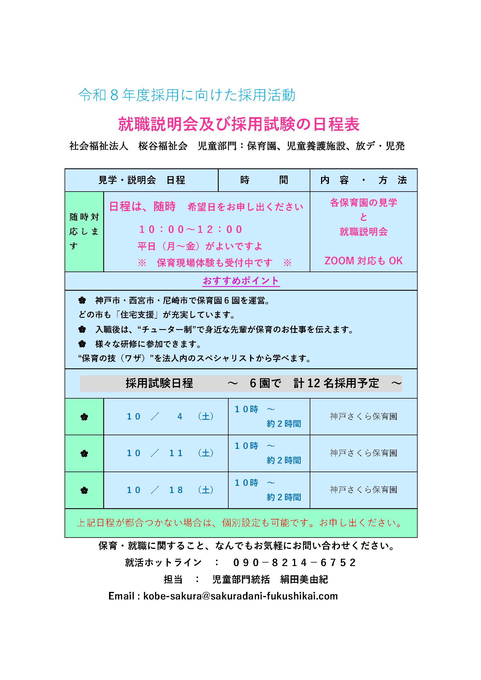 - 令和8年度採用に向けた採用活動 就職説明会及び採用試験の日程表