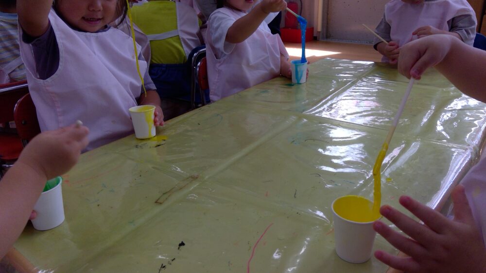 Ⅱ期は水遊びやプール遊び等などならではな遊びをはじめ、寒天遊びやスライム遊びなどの感覚遊びを沢山楽しみました。