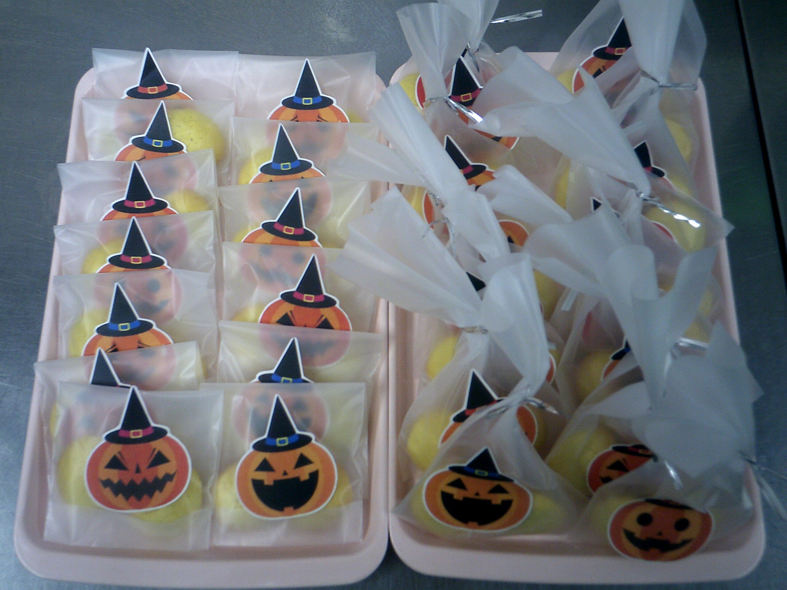 かぼちゃクッキーを一人ずつラッピングし名前を呼んで一人ずつ手渡ししました。